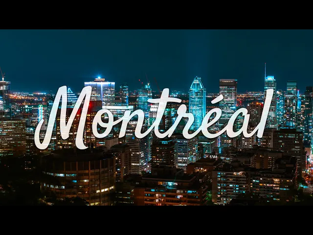 Enseigne “Bonjour Montréal” avec le centre-ville en arrière-plan